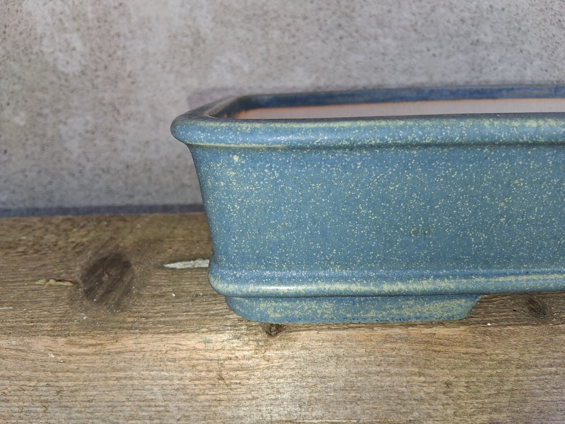 Wunderschöne eckige Schale mit einem Kragen oben wie unten. Die blaue Glasur ist unbeschreiblich.